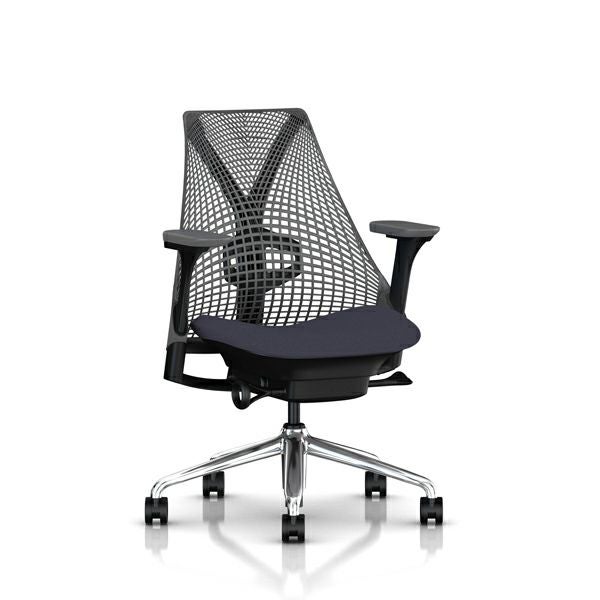 セイルチェア セイルチェア アーム:フルアジャスタブルアーム/サポートオプション:ランバーサポートあり/ベース&フレーム:ポリッシュドベース、ブラックフレーム/キャスター:カーペット用/サスペンション&アーム:スレートグレー / スレートグレー/張地:ファブリック(ゼン:ペトロリアム)