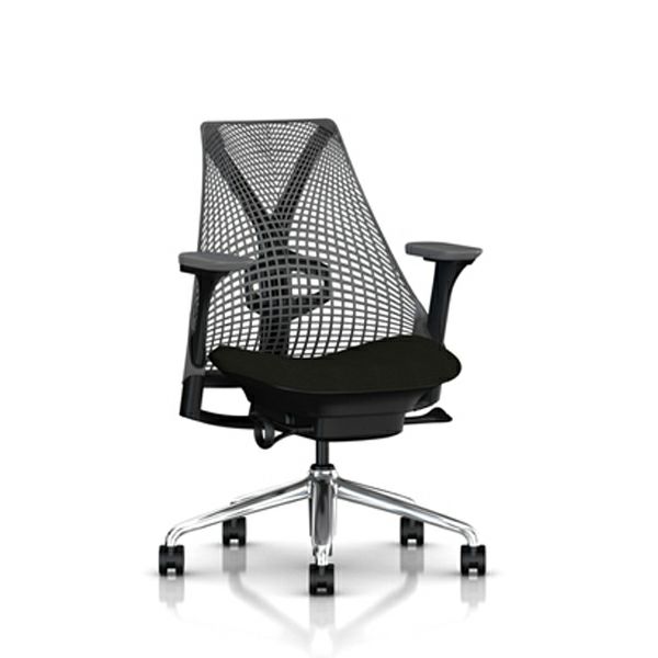 セイルチェア セイルチェア アーム:フルアジャスタブルアーム/サポートオプション:ランバーサポートあり/ベース&フレーム:ポリッシュドベース、ブラックフレーム/キャスター:カーペット用/サスペンション&アーム:スレートグレー / スレートグレー/張地:ファブリック(コスモス:ブラック)