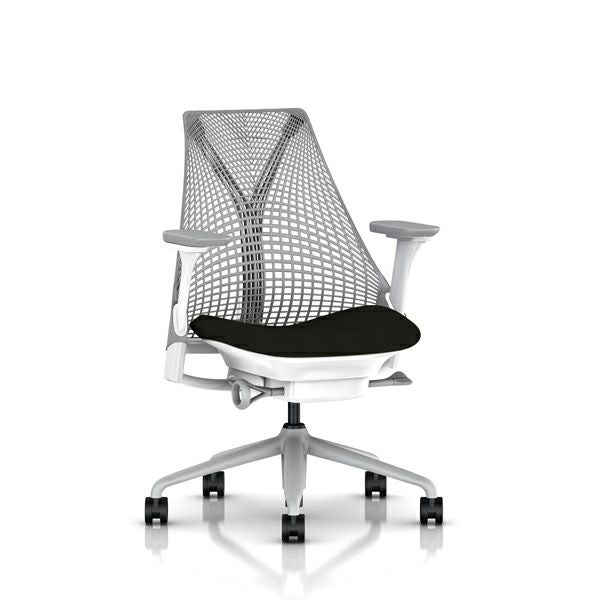 セイルチェア セイルチェア アーム:フルアジャスタブルアーム/サポートオプション:ランバーサポートなし/ベース&フレーム:フォグベース、ホワイトフレーム/サスペンションフィニッシュ:フォグ/アームフィニッシュ:フォグ/張地:ファブリック(コスモス:ノアール(オリーブ))