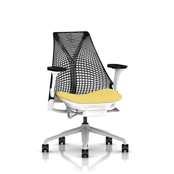 セイルチェア セイルチェア アーム:フルアジャスタブルアーム/サポートオプション:ランバーサポートなし/ベース&フレーム:フォグベース、ホワイトフレーム/サスペンションフィニッシュ:ブラック/アームフィニッシュ:ブラック/張地:ファブリック(ゼン:シトロン)