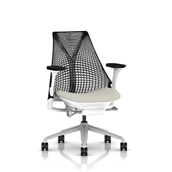 セイルチェア セイルチェア アーム:フルアジャスタブルアーム/サポートオプション:ランバーサポートなし/ベース&フレーム:フォグベース、ホワイトフレーム/サスペンションフィニッシュ:ブラック/アームフィニッシュ:ブラック/張地:ファブリック(コスモス:ムーンシャドウ)