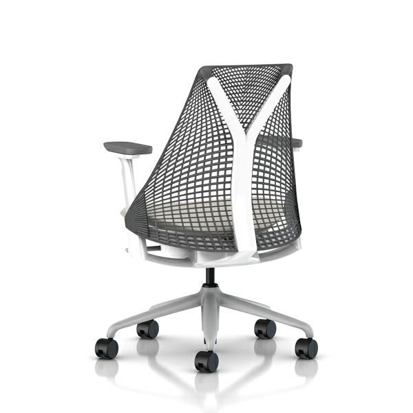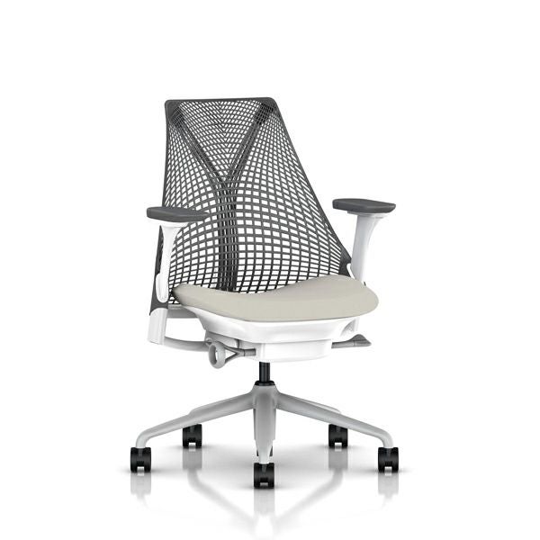 セイルチェア セイルチェア アーム:フルアジャスタブルアーム/サポートオプション:ランバーサポートなし/ベース&フレーム:フォグベース、ホワイトフレーム/サスペンションフィニッシュ:スレートグレー/アームフィニッシュ:スレートグレー/張地:ファブリック(コスモス:ムーンシャドウ)