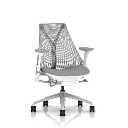 セイルチェア セイルチェア アーム:フルアジャスタブルアーム/サポートオプション:ランバーサポートなし/ベース&フレーム:フォグベース、ホワイトフレーム/キャスター:堅床・カーペット用/サスペンションフィニッシュ:フォグ/アームフィニッシュ:フォグ/張地:ファブリック(コスモス:マーキュリー)