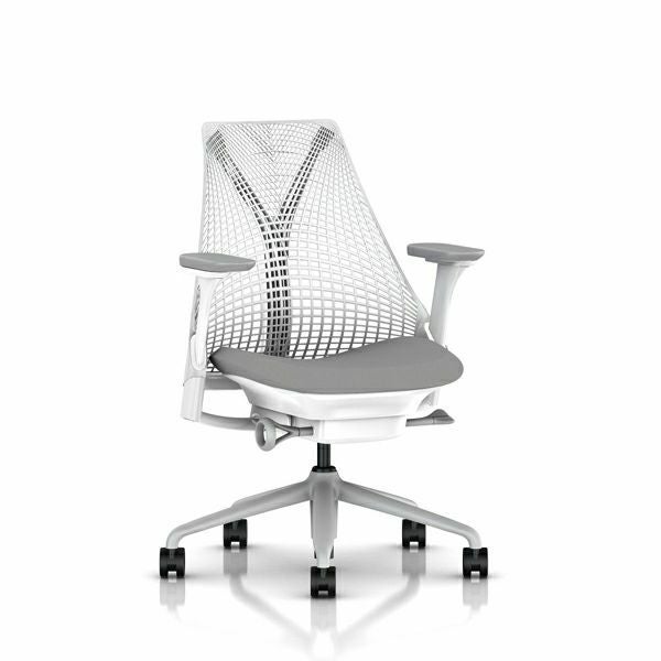 セイルチェア セイルチェア アーム:フルアジャスタブルアーム/サポートオプション:ランバーサポートなし/ベース&フレーム:フォグベース、ホワイトフレーム/キャスター:堅床・カーペット用/サスペンションフィニッシュ:スタジオホワイト/アームフィニッシュ:フォグ/張地:ファブリック(メドレー:フェザーグレー)