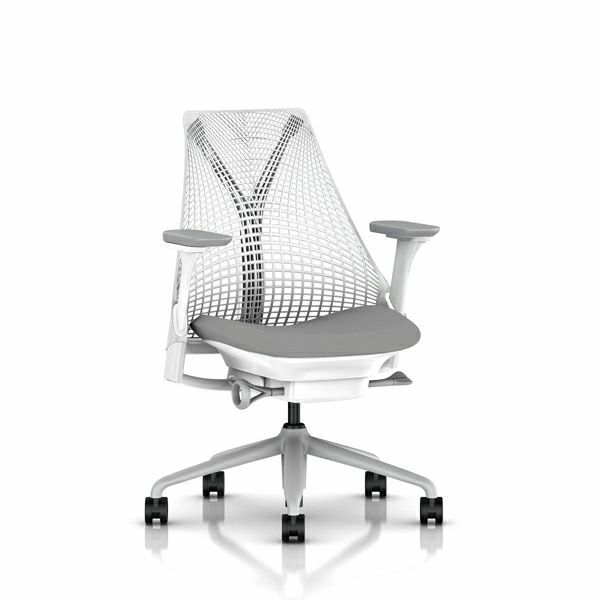 セイルチェア セイルチェア アーム:フルアジャスタブルアーム/サポートオプション:ランバーサポートなし/ベース&フレーム:フォグベース、ホワイトフレーム/キャスター:堅床・カーペット用/サスペンションフィニッシュ:スタジオホワイト/アームフィニッシュ:フォグ/張地:ファブリック(コスモス:マーキュリー)