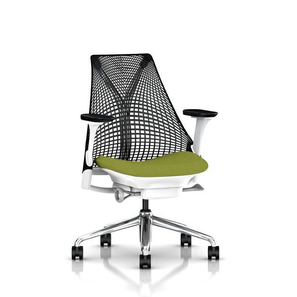 セイルチェア セイルチェア アーム:フルアジャスタブルアーム/サポートオプション:ランバーサポートなし/ベース&フレーム:ポリシュッドベース、ホワイトフレーム/サスペンションフィニッシュ:ブラック/アームフィニッシュ:ブラック/張地:ファブリック(メドレー:ローデン)