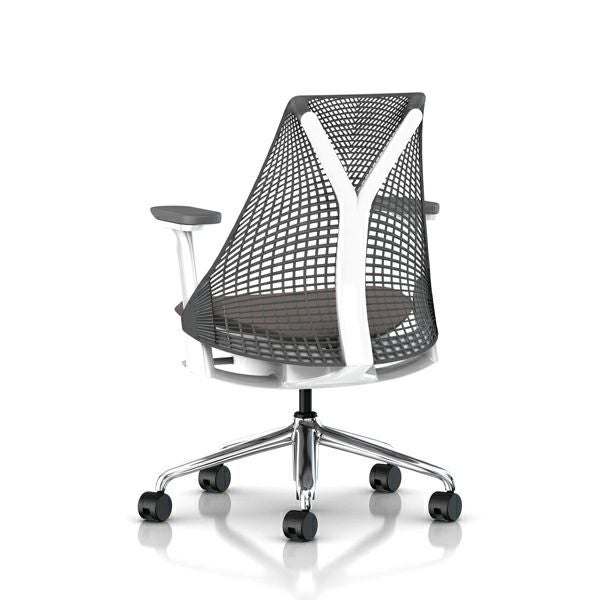 セイルチェア セイルチェア アーム:フルアジャスタブルアーム/サポートオプション:ランバーサポートなし/ベース&フレーム:ポリシュッドベース、ホワイトフレーム/サスペンションフィニッシュ:スレートグレー/アームフィニッシュ:スレートグレー/張地:ファブリック(ゼン:アッシュ)