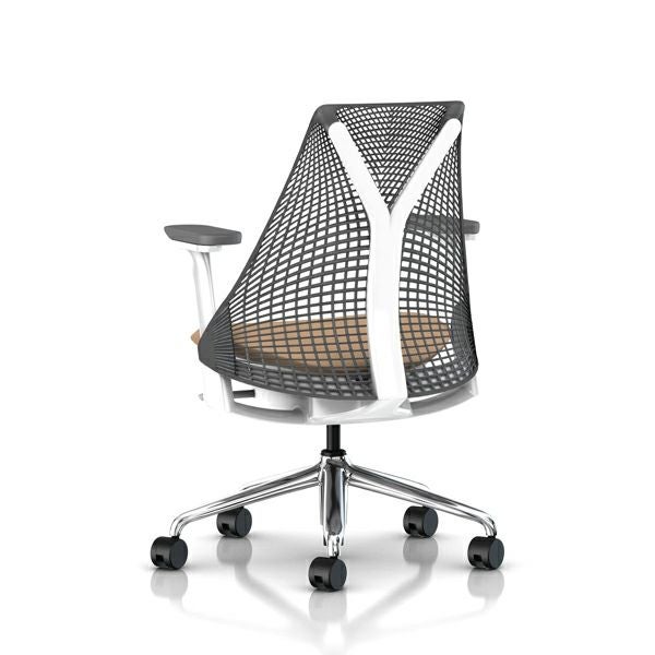 セイルチェア セイルチェア アーム:フルアジャスタブルアーム/サポートオプション:ランバーサポートなし/ベース&フレーム:ポリシュッドベース、ホワイトフレーム/サスペンションフィニッシュ:スレートグレー/アームフィニッシュ:スレートグレー/張地:ファブリック(ゼン:オートミール)