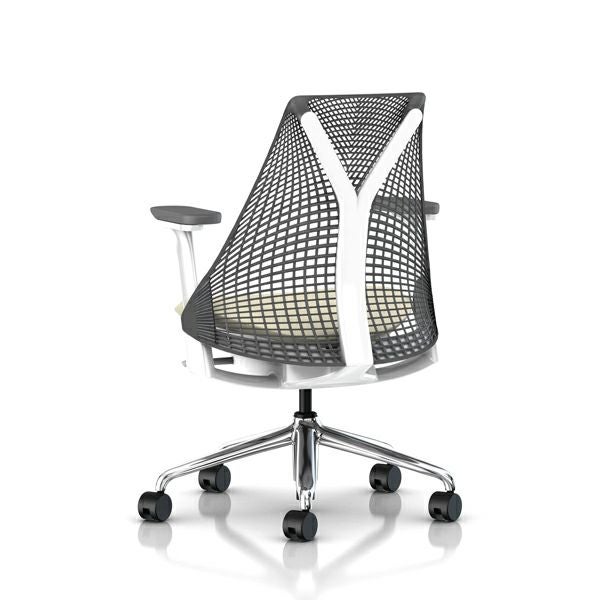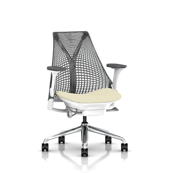 セイルチェア セイルチェア アーム:フルアジャスタブルアーム/サポートオプション:ランバーサポートなし/ベース&フレーム:ポリシュッドベース、ホワイトフレーム/サスペンションフィニッシュ:スレートグレー/アームフィニッシュ:スレートグレー/張地:ファブリック(ゼン:クラウド)