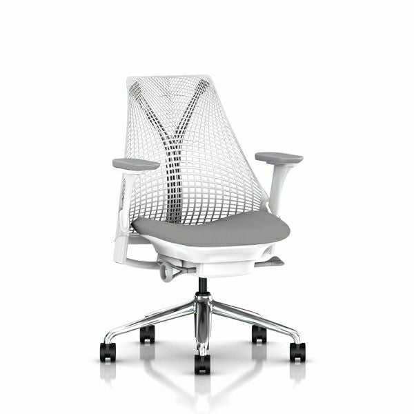セイルチェア セイルチェア アーム:フルアジャスタブルアーム/サポートオプション:ランバーサポートなし/ベース&フレーム:ポリシュッドベース、ホワイトフレーム/キャスター:堅床・カーペット用/サスペンションフィニッシュ:スタジオホワイト/アームフィニッシュ:フォグ/張地:ファブリック(コスモス:マーキュリー)