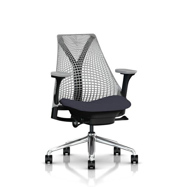セイルチェア セイルチェア アーム:フルアジャスタブルアーム/サポートオプション:ランバーサポートなし/ベース&フレーム:ポリッシュドベース、ブラックフレーム/サスペンションフィニッシュ:フォグ/アームフィニッシュ:フォグ/張地:ファブリック(ゼン:ペトロリアム)