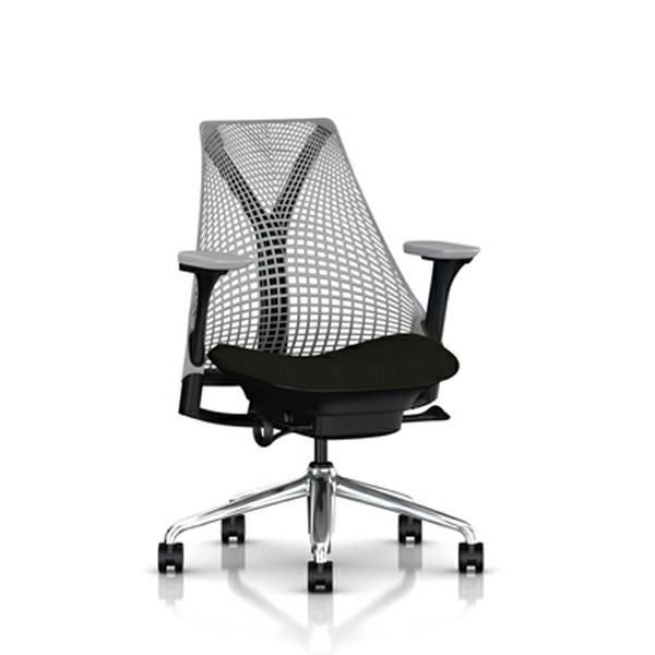 セイルチェア セイルチェア アーム:フルアジャスタブルアーム/サポートオプション:ランバーサポートなし/ベース&フレーム:ポリッシュドベース、ブラックフレーム/キャスター:カーペット用/サスペンションフィニッシュ:フォグ/アームフィニッシュ:フォグ/張地:ファブリック(コスモス:ブラック)