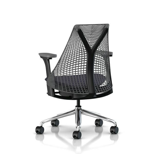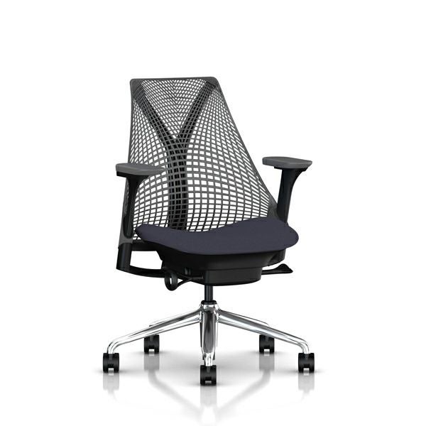 セイルチェア セイルチェア アーム:フルアジャスタブルアーム/サポートオプション:ランバーサポートなし/ベース&フレーム:ポリッシュドベース、ブラックフレーム/サスペンションフィニッシュ:スレートグレー/アームフィニッシュ:スレートグレー/張地:ファブリック(ゼン:ペトロリアム)