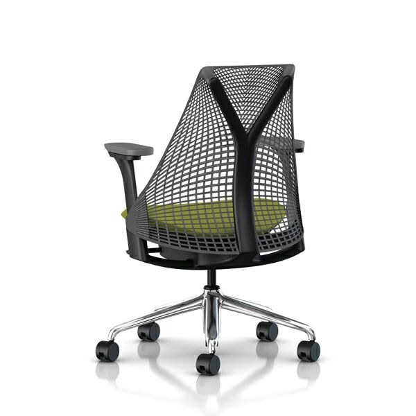 セイルチェア セイルチェア アーム:フルアジャスタブルアーム/サポートオプション:ランバーサポートなし/ベース&フレーム:ポリッシュドベース、ブラックフレーム/サスペンションフィニッシュ:スレートグレー/アームフィニッシュ:スレートグレー/張地:ファブリック(コスモス:アボカド)