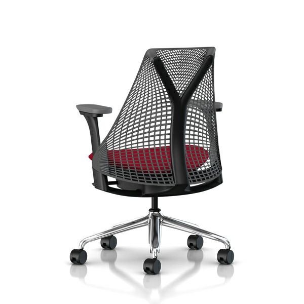 セイルチェア セイルチェア アーム:フルアジャスタブルアーム/サポートオプション:ランバーサポートなし/ベース&フレーム:ポリッシュドベース、ブラックフレーム/サスペンションフィニッシュ:スレートグレー/アームフィニッシュ:スレートグレー/張地:ファブリック(コスモス:ルージュ)