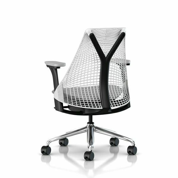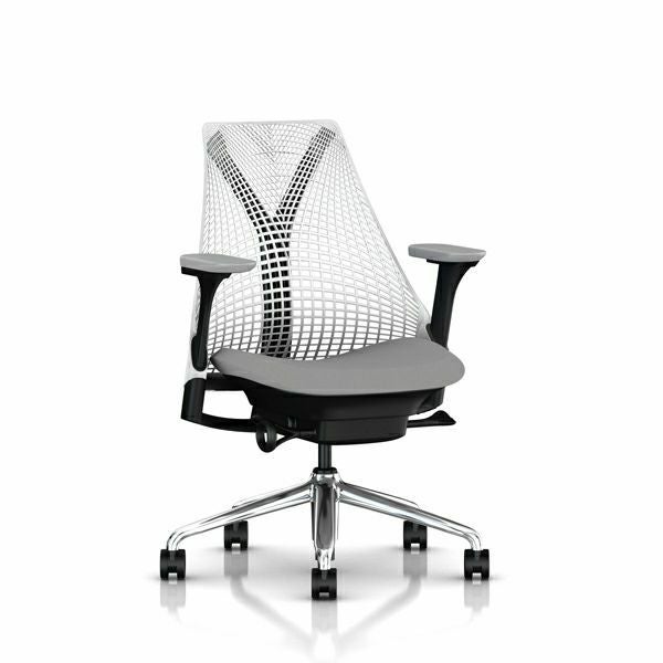 セイルチェア セイルチェア アーム:フルアジャスタブルアーム/サポートオプション:ランバーサポートなし/ベース&フレーム:ポリッシュドベース、ブラックフレーム/キャスター:堅床・カーペット用/サスペンションフィニッシュ:スタジオホワイト/アームフィニッシュ:フォグ/張地:ファブリック(コスモス:マーキュリー)