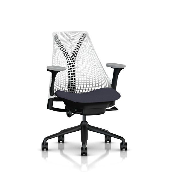セイルチェア セイルチェア アーム:フルアジャスタブルアーム/サポートオプション:ランバーサポートなし/ベース&フレーム:ブラックベース、ブラックフレーム/サスペンションフィニッシュ:スタジオホワイト/アームフィニッシュ:フォグ/張地:ファブリック(ゼン:ペトロリアム)