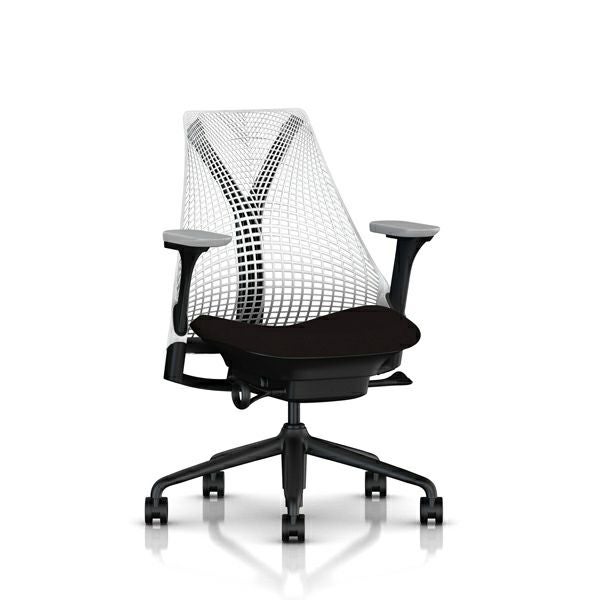 セイルチェア セイルチェア アーム:フルアジャスタブルアーム/サポートオプション:ランバーサポートなし/ベース&フレーム:ブラックベース、ブラックフレーム/サスペンションフィニッシュ:スタジオホワイト/アームフィニッシュ:フォグ/張地:ファブリック(ゼン:オニキス)