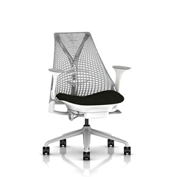 セイルチェア セイルチェア アーム:アジャスタブルアーム/サポートオプション:ランバーサポートあり/ベース&フレーム:フォグベース、ホワイトフレーム/キャスター:カーペット用/サスペンション&アーム:フォグ / フォグ/張地:ファブリック(コスモス:ブラック)