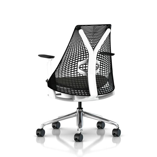 セイルチェア セイルチェア アーム:アジャスタブルアーム/サポートオプション:ランバーサポートあり/ベース&フレーム:ポリシュッドベース、ホワイトフレーム/キャスター:カーペット用/サスペンション&アーム:ブラック / ブラック/張地:ファブリック(コスモス:グラナイト)