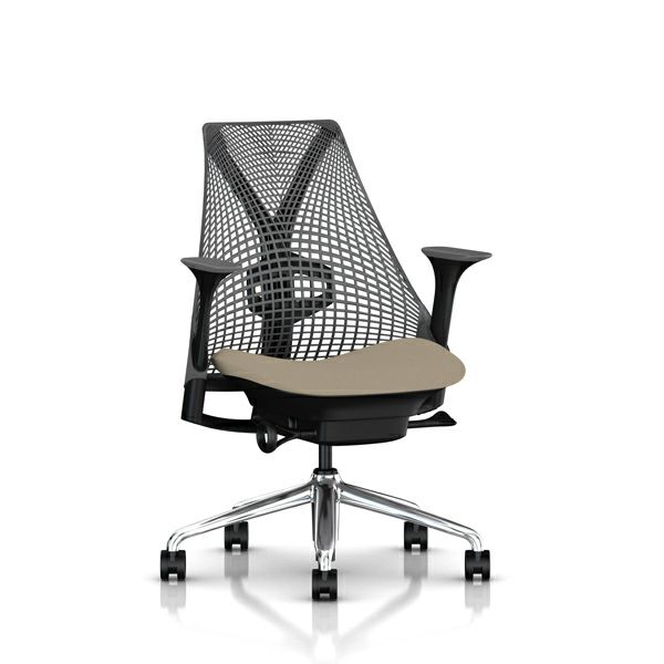 セイルチェア セイルチェア アーム:アジャスタブルアーム/サポートオプション:ランバーサポートあり/ベース&フレーム:ポリッシュドベース、ブラックフレーム/キャスター:カーペット用/サスペンション&アーム:スレートグレー / スレートグレー/張地:ファブリック(ゼン:プラチナ)