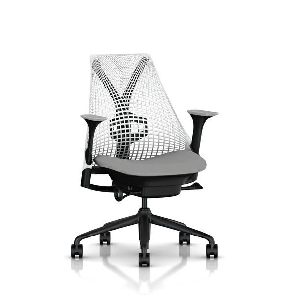 セイルチェア セイルチェア アーム:アジャスタブルアーム/サポートオプション:ランバーサポートあり/ベース&フレーム:ブラックベース、ブラックフレーム/サスペンションフィニッシュ:スタジオホワイト/アームフィニッシュ:フォグ/張地:ファブリック(メドレー:フェザーグレー)