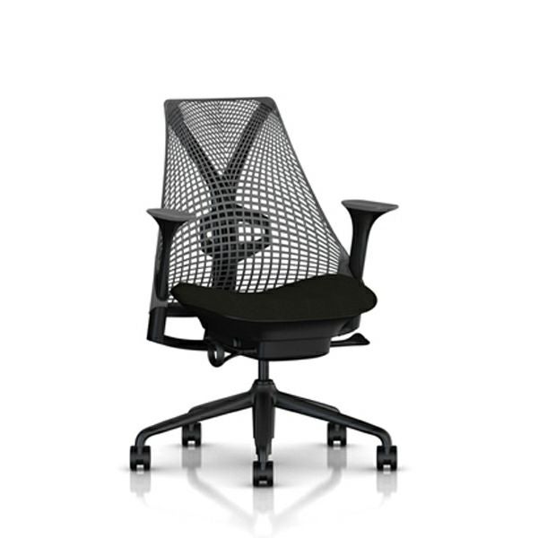 セイルチェア セイルチェア アーム:アジャスタブルアーム/サポートオプション:ランバーサポートあり/ベース&フレーム:ブラックベース、ブラックフレーム/キャスター:カーペット用/サスペンション&アーム:スレートグレー / スレートグレー/張地:ファブリック(コスモス:ブラック)
