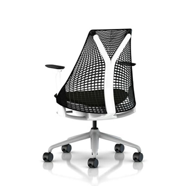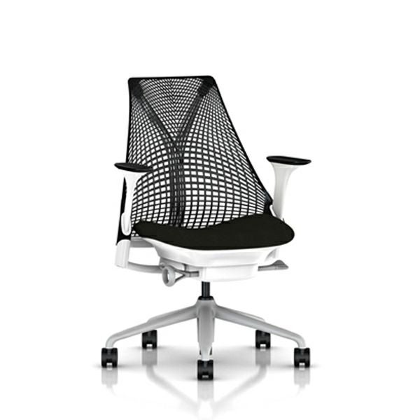 セイルチェア セイルチェア アーム:アジャスタブルアーム/サポートオプション:ランバーサポートなし/ベース&フレーム:フォグベース、ホワイトフレーム/キャスター:カーペット用/サスペンション&アーム:ブラック / ブラック/張地:ファブリック(コスモス:ブラック)