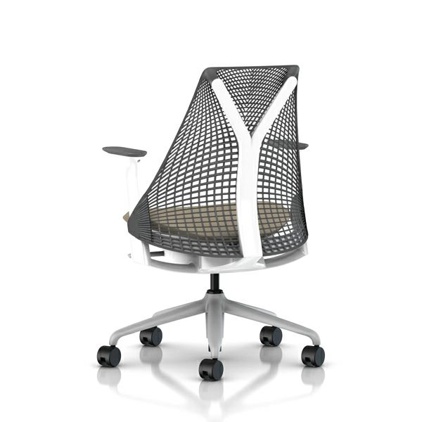 セイルチェア セイルチェア アーム:アジャスタブルアーム/サポートオプション:ランバーサポートなし/ベース&フレーム:フォグベース、ホワイトフレーム/サスペンションフィニッシュ:スレートグレー/アームフィニッシュ:スレートグレー/張地:ファブリック(ゼン:プラチナ)
