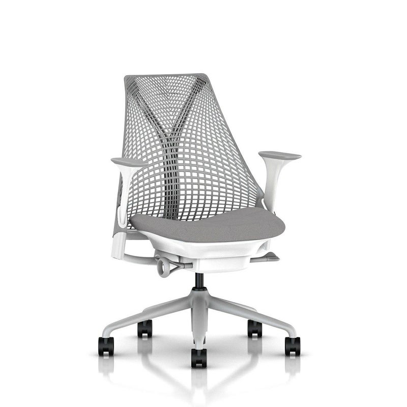セイルチェア セイルチェア アーム:アジャスタブルアーム/サポートオプション:ランバーサポートなし/ベース&フレーム:フォグベース、ホワイトフレーム/堅床・カーペット用キャスター/サスペンションフィニッシュ:フォグ/アームフィニッシュ:フォグ/張地:ファブリック(メドレー:バイユー)