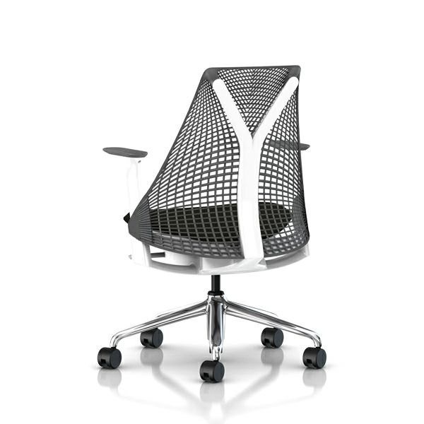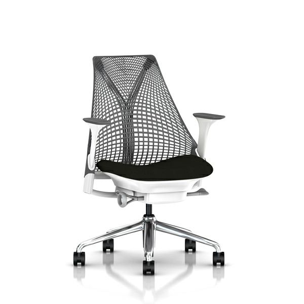 セイルチェア セイルチェア アーム:アジャスタブルアーム/サポートオプション:ランバーサポートなし/ベース&フレーム:ポリシュッドベース、ホワイトフレーム/サスペンションフィニッシュ:スレートグレー/アームフィニッシュ:スレートグレー/張地:ファブリック(コスモス:ノアール(オリーブ))