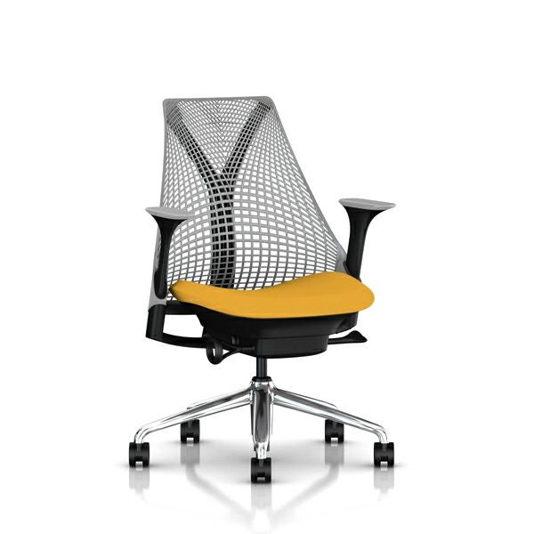 セイルチェア セイルチェア アーム:アジャスタブルアーム/サポートオプション:ランバーサポートなし/ベース&フレーム:ポリッシュドベース、ブラックフレーム/サスペンションフィニッシュ:フォグ/アームフィニッシュ:フォグ/張地:ファブリック(コスモス:マリーゴールド)