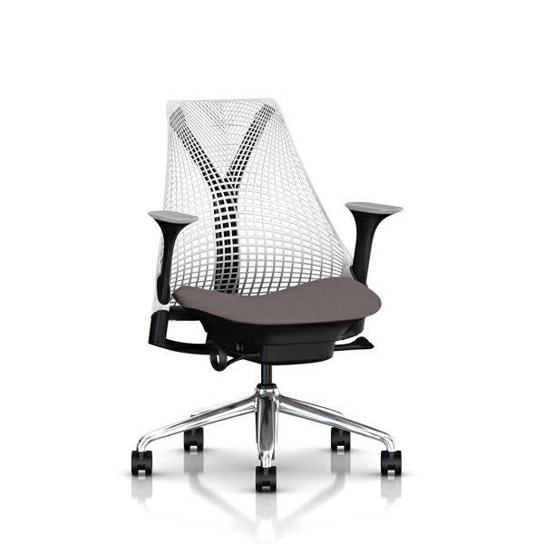 セイルチェア セイルチェア アーム:アジャスタブルアーム/サポートオプション:ランバーサポートなし/ベース&フレーム:ポリッシュドベース、ブラックフレーム/サスペンションフィニッシュ:スタジオホワイト/アームフィニッシュ:フォグ/張地:ファブリック(ゼン:アッシュ)