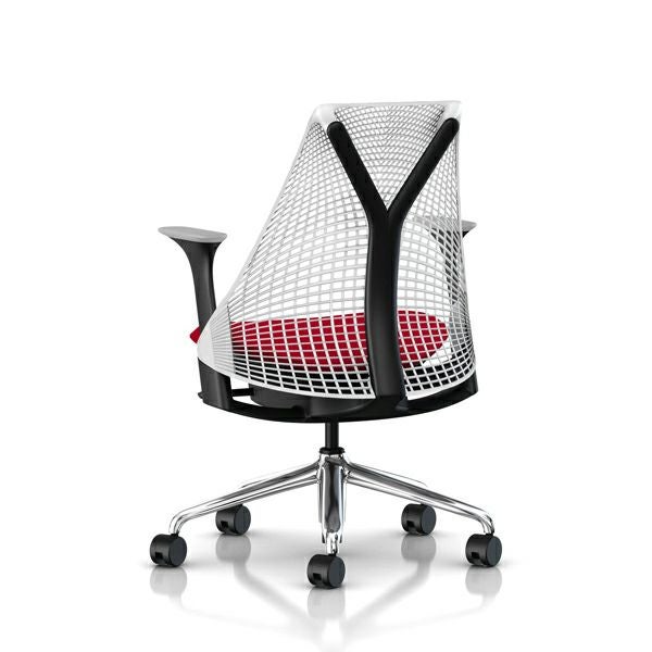 セイルチェア セイルチェア アーム:アジャスタブルアーム/サポートオプション:ランバーサポートなし/ベース&フレーム:ポリッシュドベース、ブラックフレーム/サスペンションフィニッシュ:スタジオホワイト/アームフィニッシュ:フォグ/張地:ファブリック(ゼン:スカーレット)