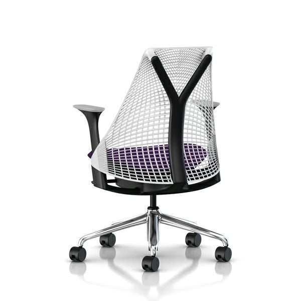 セイルチェア セイルチェア アーム:アジャスタブルアーム/サポートオプション:ランバーサポートなし/ベース&フレーム:ポリッシュドベース、ブラックフレーム/サスペンションフィニッシュ:スタジオホワイト/アームフィニッシュ:フォグ/張地:ファブリック(ゼン:レイト)