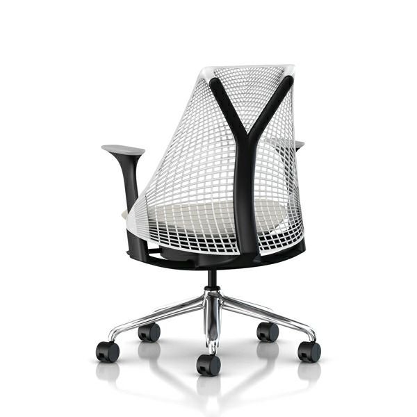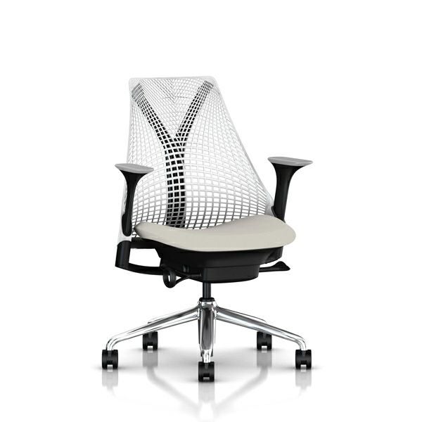 セイルチェア セイルチェア アーム:アジャスタブルアーム/サポートオプション:ランバーサポートなし/ベース&フレーム:ポリッシュドベース、ブラックフレーム/サスペンションフィニッシュ:スタジオホワイト/アームフィニッシュ:フォグ/張地:ファブリック(コスモス:ムーンシャドウ)