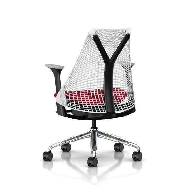 セイルチェア セイルチェア アーム:アジャスタブルアーム/サポートオプション:ランバーサポートなし/ベース&フレーム:ポリッシュドベース、ブラックフレーム/サスペンションフィニッシュ:スタジオホワイト/アームフィニッシュ:フォグ/張地:ファブリック(コスモス:ルージュ)