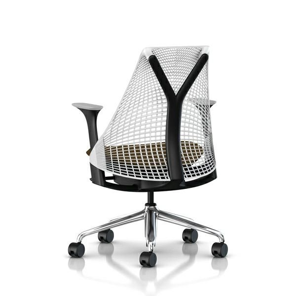 セイルチェア セイルチェア アーム:アジャスタブルアーム/サポートオプション:ランバーサポートなし/ベース&フレーム:ポリッシュドベース、ブラックフレーム/サスペンションフィニッシュ:スタジオホワイト/アームフィニッシュ:フォグ/張地:ファブリック(コスモス:ウォールナット)