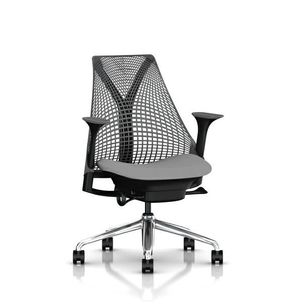 セイルチェア セイルチェア アーム:アジャスタブルアーム/サポートオプション:ランバーサポートなし/ベース&フレーム:ポリッシュドベース、ブラックフレーム/サスペンションフィニッシュ:スレートグレー/アームフィニッシュ:スレートグレー/張地:ファブリック(メドレー:フェザーグレー)