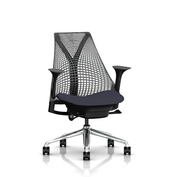 セイルチェア セイルチェア アーム:アジャスタブルアーム/サポートオプション:ランバーサポートなし/ベース&フレーム:ポリッシュドベース、ブラックフレーム/サスペンションフィニッシュ:スレートグレー/アームフィニッシュ:スレートグレー/張地:ファブリック(ゼン:ペトロリアム)