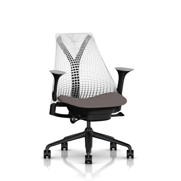 セイルチェア セイルチェア アーム:アジャスタブルアーム/サポートオプション:ランバーサポートなし/ベース&フレーム:ブラックベース、ブラックフレーム/サスペンションフィニッシュ:スタジオホワイト/アームフィニッシュ:フォグ/張地:ファブリック(メドレー:チャコール)