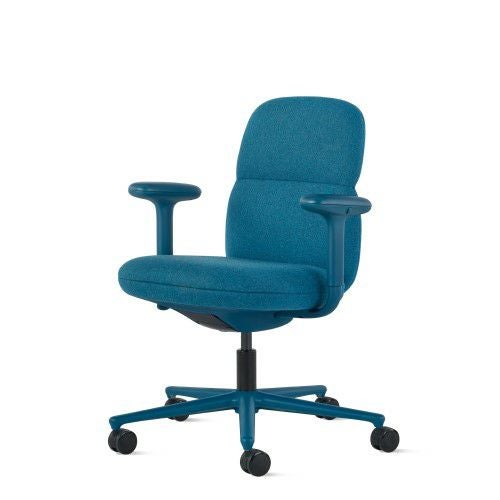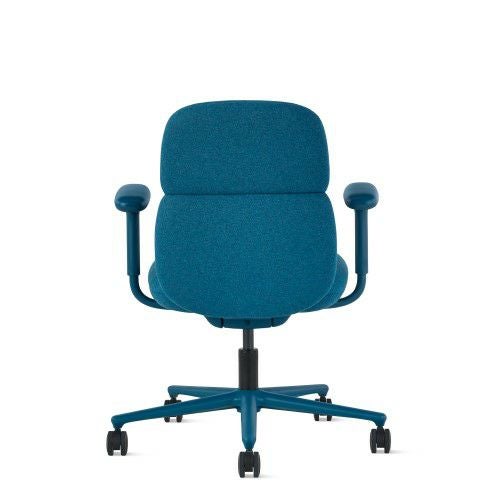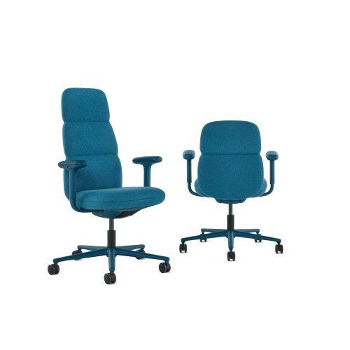 ハーマンミラーのアサリチェアは、丸みを帯びたフレームを張地で覆った有機的なフォルムにデザインされています。人間工学に基づいた特許取得済みのテクノロジー(ポスチャーフィット)を搭載した背もたれが腰を支え、背骨を自然なカーブに整えます。オフィスチェアながら柔らかい座り心地で、マハラム社のファブリックとレザーからお好みの素材と色を選択して、空間にアクセントを添えたり溶け込ませたりできます。