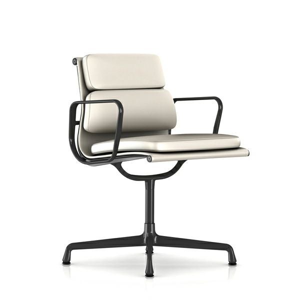 イームズソフトパッドグループ サイドチェア 4本脚タイプ イームズソフトパッドグループ サイドチェア 4本脚タイプ アーム:アーム付/ベース&フレーム:グラファイトサテン/張地:皮革(アイボリー)