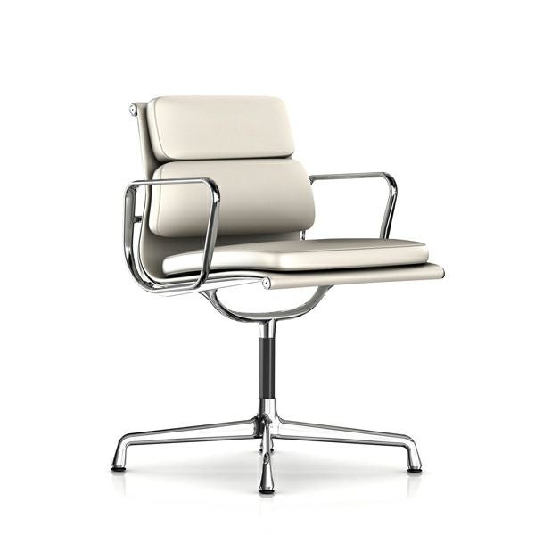 イームズソフトパッドグループ サイドチェア 4本脚タイプ イームズソフトパッドグループ サイドチェア 4本脚タイプ アーム:アーム付/ベース&フレーム:アルミバフ/張地:皮革(アイボリー)