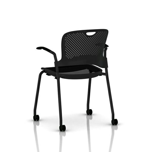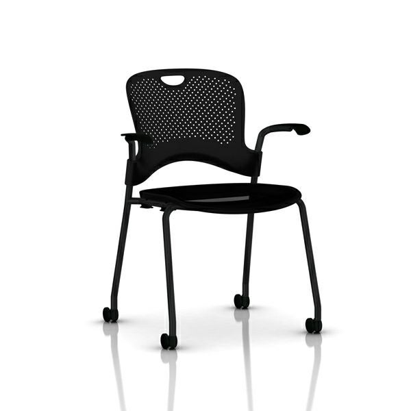 ケイパーチェア スタッキング/フレックスネット アーム付 ケイパーチェア スタッキング/フレックスネット アーム付 座面仕様:フレックスネット/アーム:固定アーム/フレーム:ブラック/シェル:ブラック/キャスター:堅床、カーペット用キャスター/アームフィニッシュ:ブラック/フレックスネット:ブラック