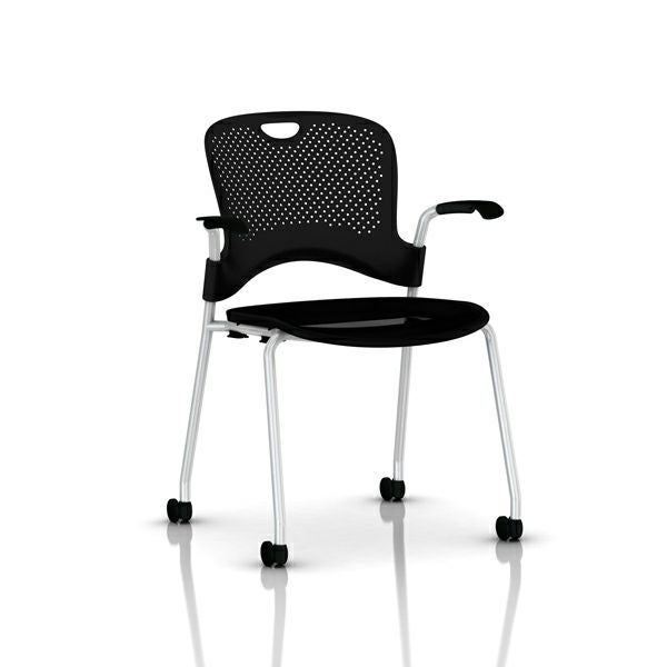 ケイパーチェア スタッキング/フレックスネット アーム付 ケイパーチェア スタッキング/フレックスネット アーム付 座面仕様:フレックスネット/アーム:固定アーム/フレーム:メタリックシルバー/シェル:ブラック/キャスター:堅床、カーペット用キャスター/アームフィニッシュ:ブラック/フレックスネット:ブラック