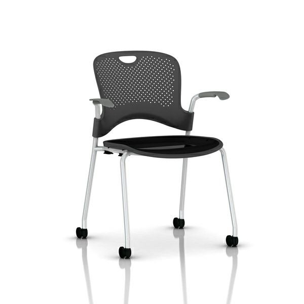 ケイパーチェア スタッキング/フレックスネット アーム付 ケイパーチェア スタッキング/フレックスネット アーム付 座面仕様:フレックスネット/アーム:固定アーム/フレーム:メタリックシルバー/シェル:グラファイト/キャスター:堅床、カーペット用キャスター/アームフィニッシュ:シルバーグレー/フレックスネット:ブラック
