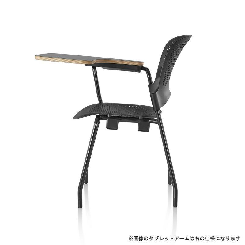 ケイパーチェア スタッキング/タブレット アーム付 座面仕様:フレックスネット/アーム:タブレットアーム:左/フレーム:ブラック/シェル:ブラック/グライズ/アームフィニッシュ:ブラック/フレックスネット:ブラック