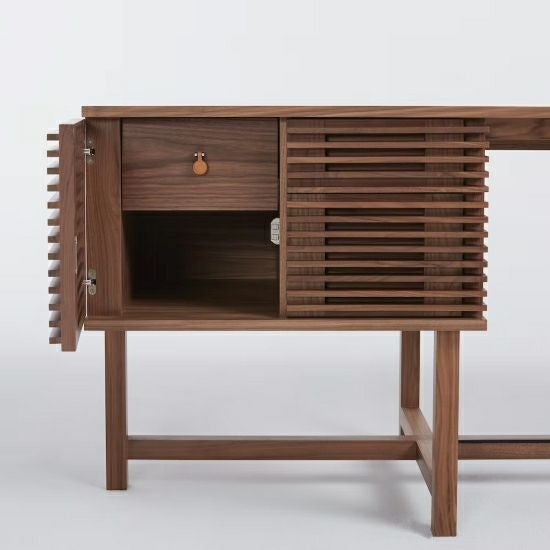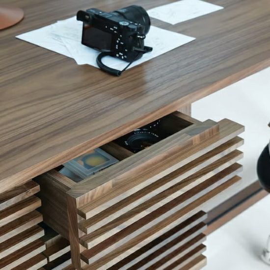 精密にデザインされた幾何学的なフレームが特徴のラインストレージデスクは、2010年発売以来、 顧客に愛され続けています。このコンクリート ジャングルの自然への憧れを反映し、安らぎと落ち着きをもたらす力強い水平線が特徴です。 片側には引き出しとキャビネット、反対側には電源タップやルーターなどを収納できるスペースがあります。